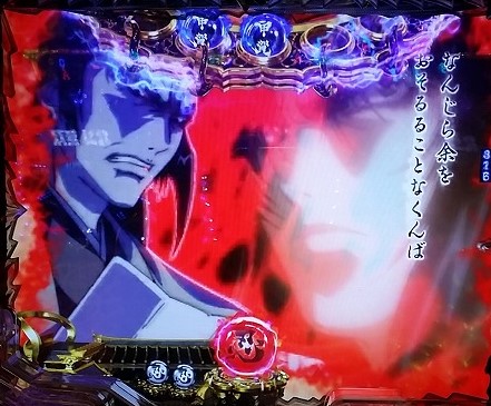 鞘役モノ赤発光・ロゴ赤発光はバトル以上濃厚です。(但し変動開始時のお胡夷・陽炎セリフでの鞘赤は除く。豹馬ならおそらくバトル以上濃厚)